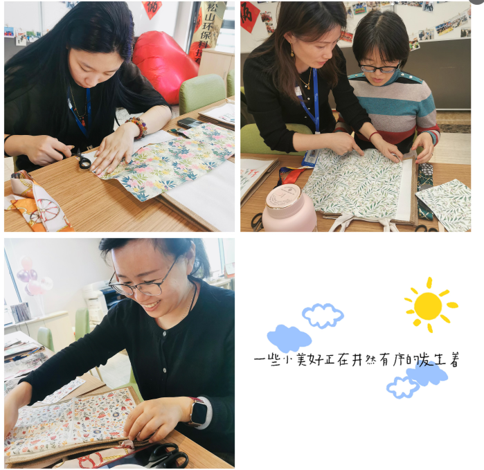 活动伊始,所有女性员工体验了源自欧洲的蝶古巴特(Decoupage)艺术。参与者通过剪裁环保再生图案纸、拼贴装饰、涂胶定型等步骤,将素色帆布包改造为独一无二的个性单品。活动现场欢声笑语不断,员工们不仅展现了艺术创造力,更通过亲手制作可重复使用的帆布包,践行了公司倡导的“减塑环保”理念。