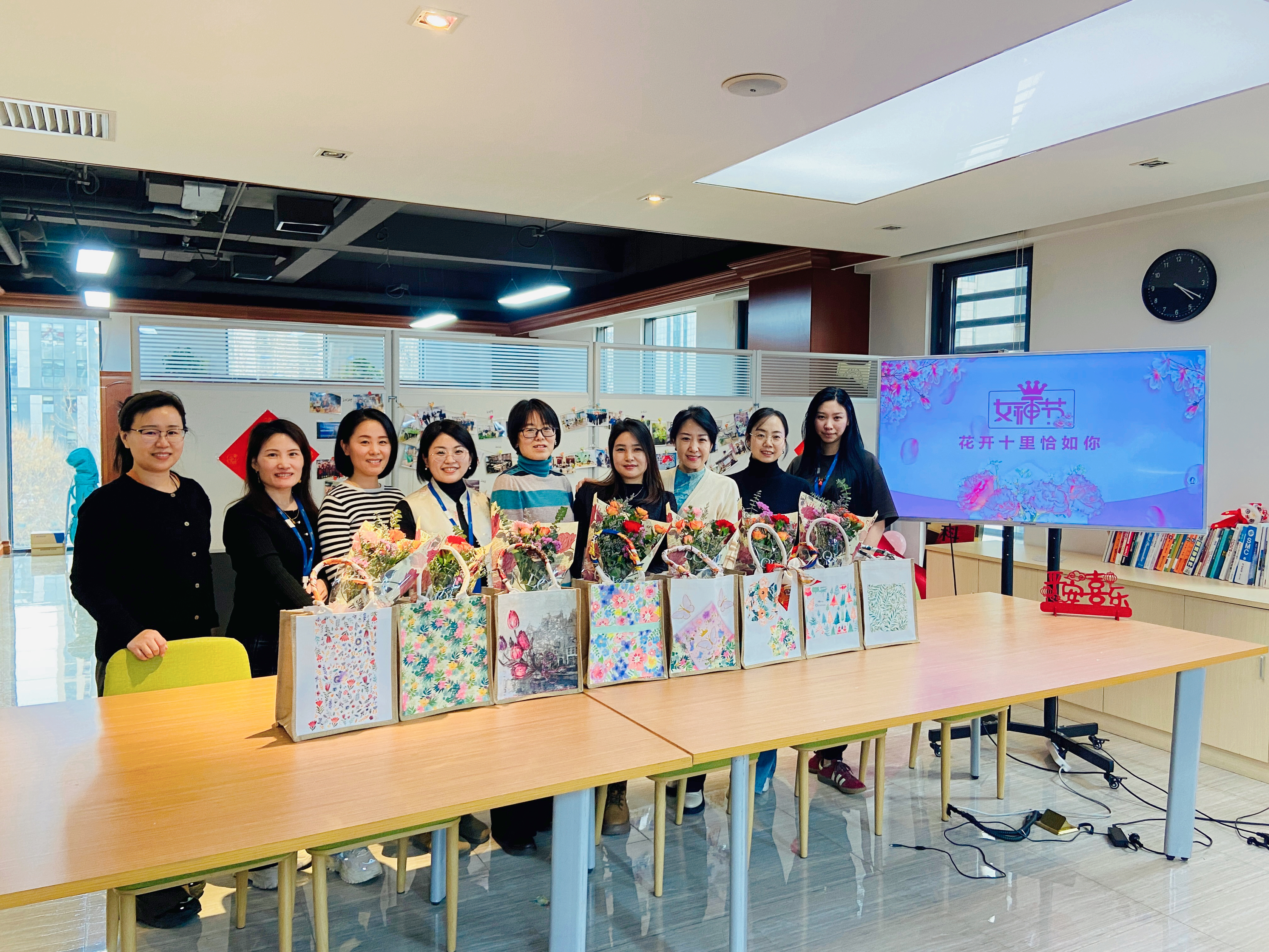 手作环节结束后,一场以“春日之约”为主题的女生专属午宴温情开启。正当众人用餐时,总务部王女士手捧鲜花,惊喜入场,收到鲜花的女职工纷纷感受到来自公司的惊喜与温暖。